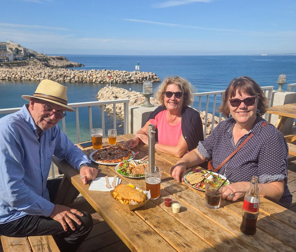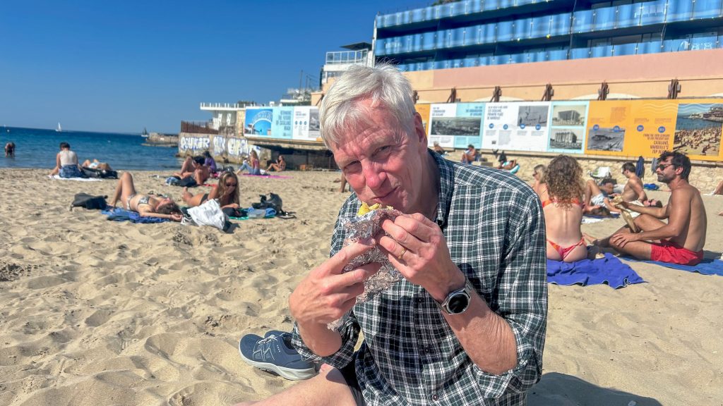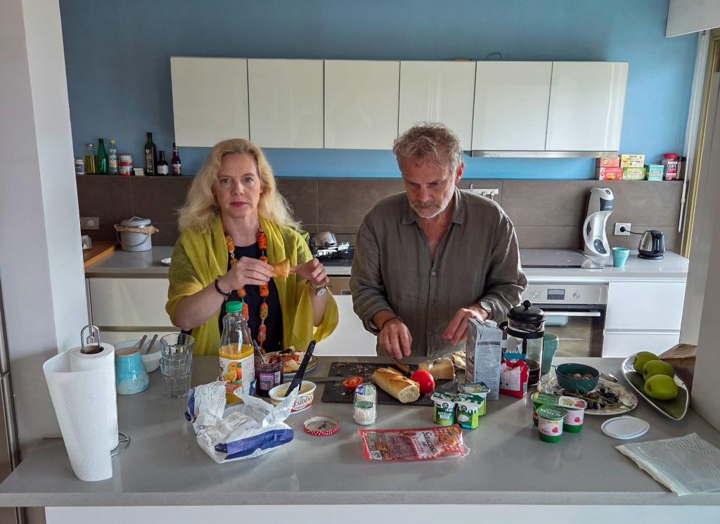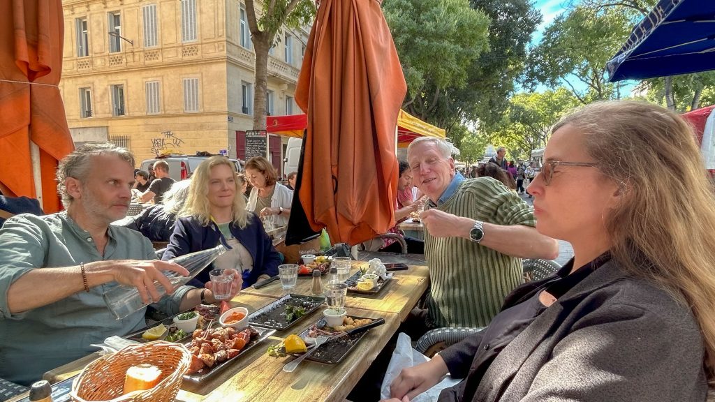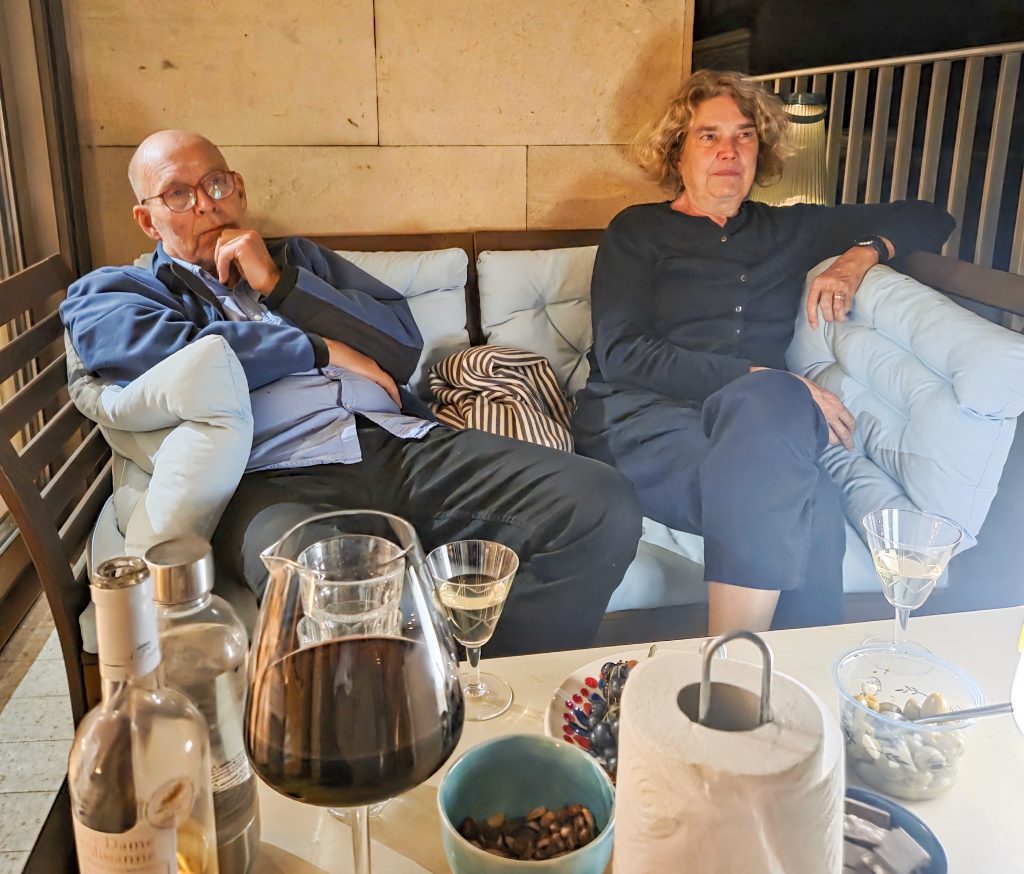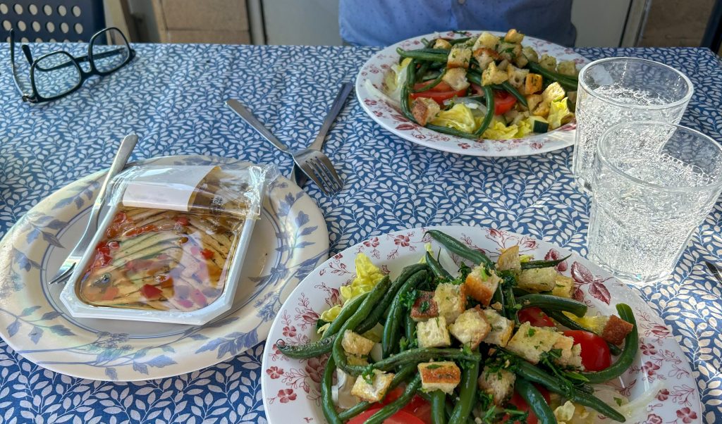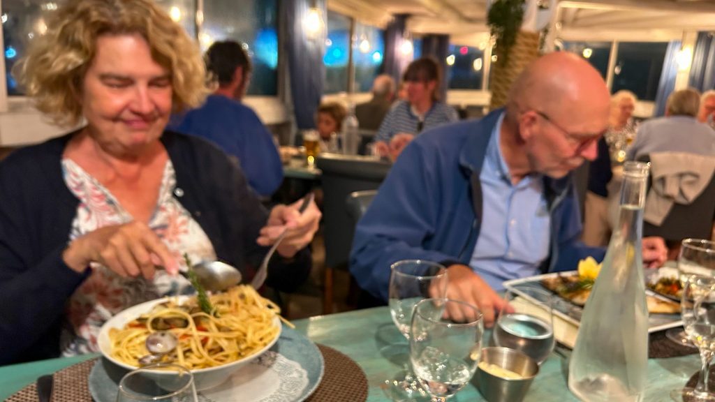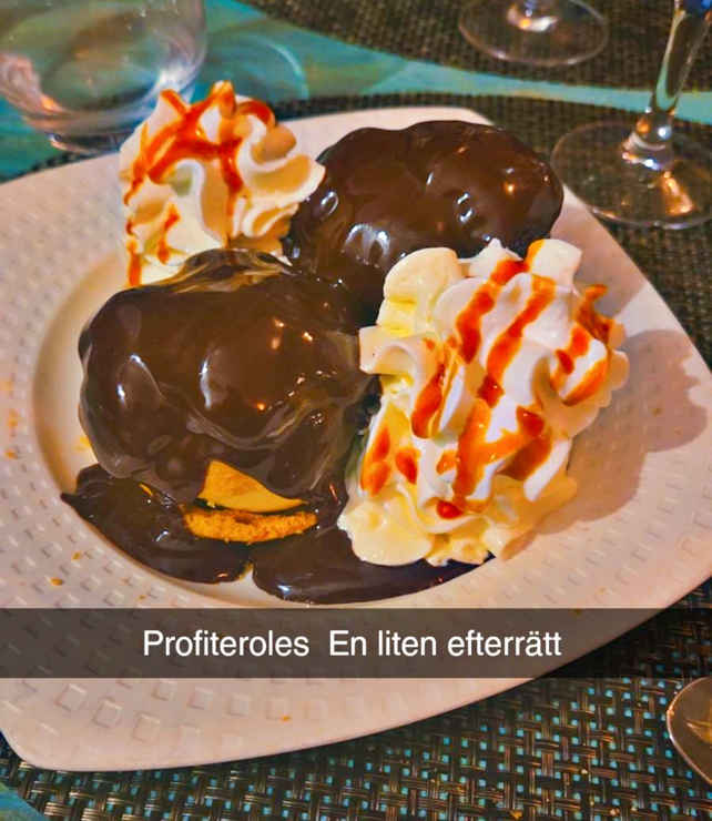 Varmare idag också ca 24-25 grader. Så varmt redan vid frukost att parasollet behövs.
