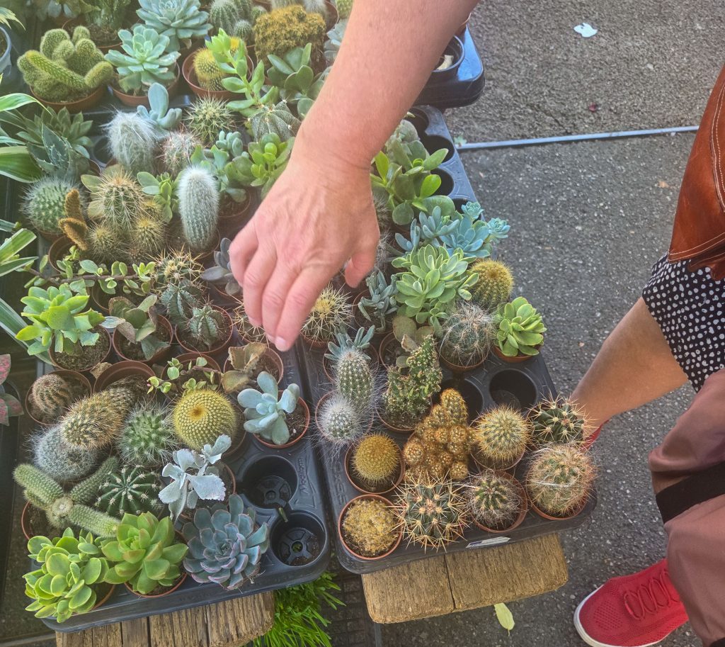 Går ut på marknaden, kollar runt, köper lite grönsaker och två kaktusar till balkongen.