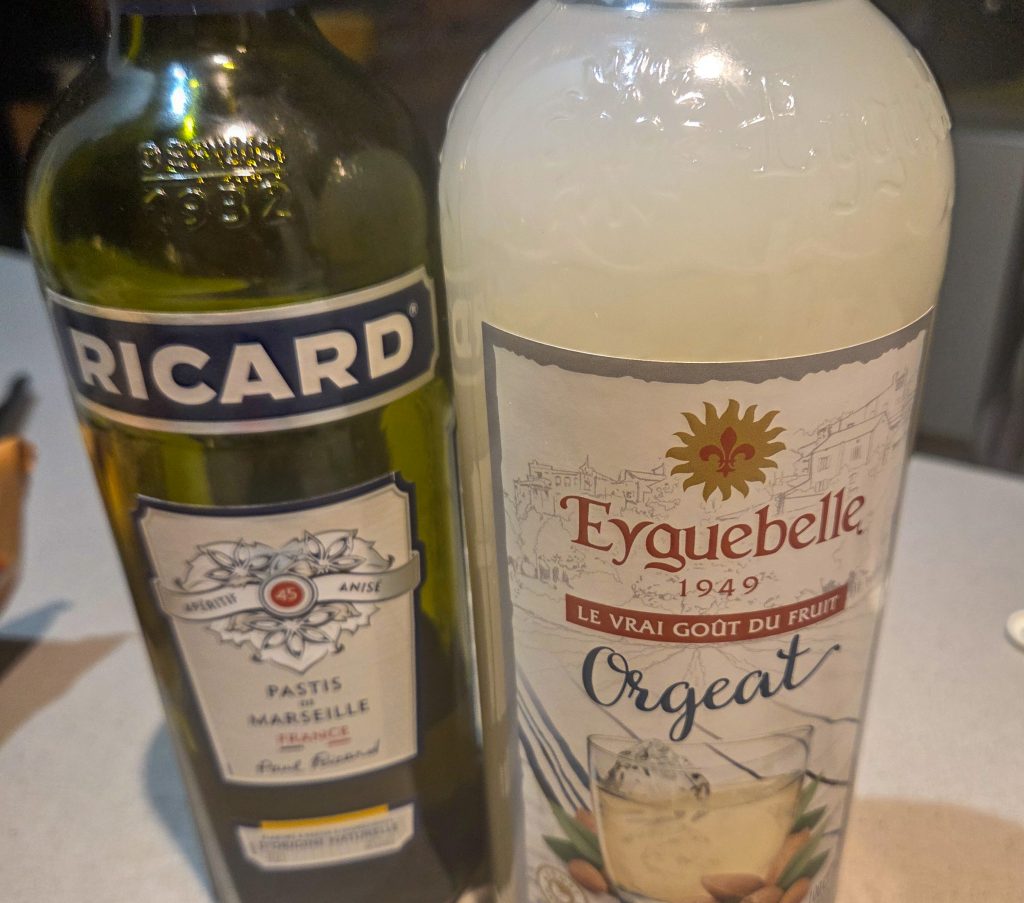 Testar sen att göra en drink Mauresque som de dricker mycket Izzos böcker, det är Pastis, Oregat och vatten. Oregat är en söt mandeldryck. Blir mumsigt!