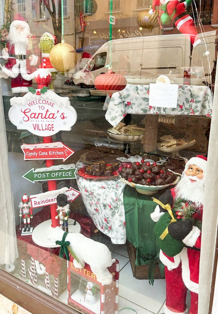 Den lilla choklad tillverkardamen har piffat till sitt fönster inför jul.