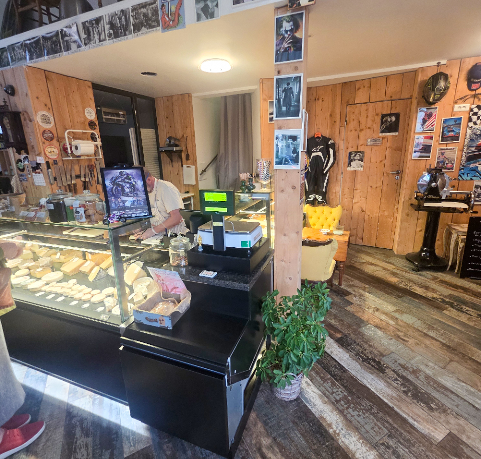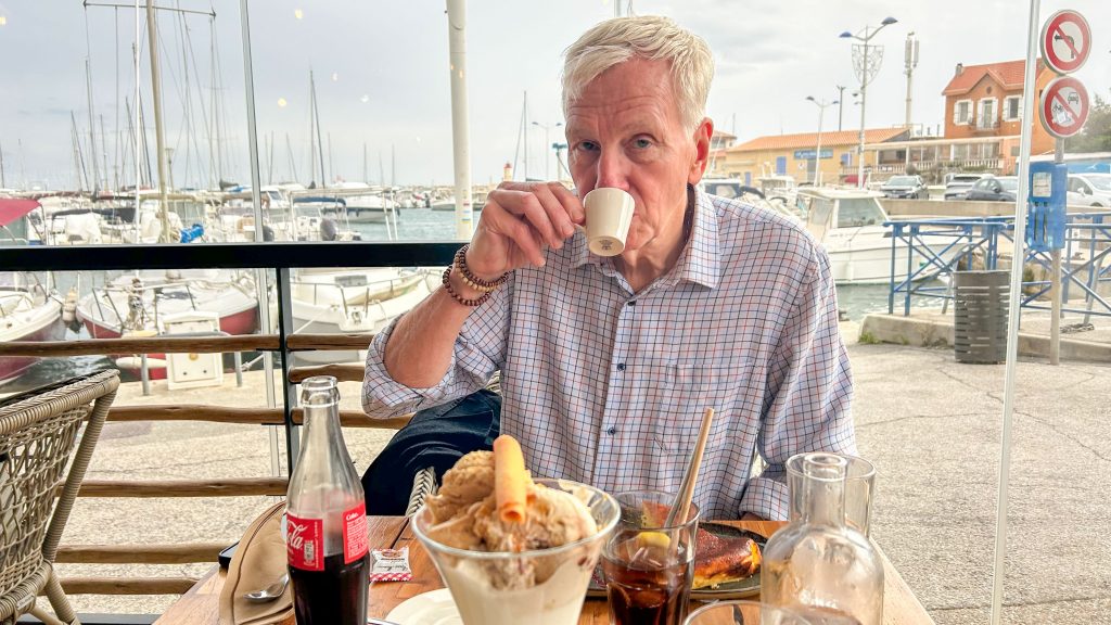 Vi knatar runt och kollar in den lilla stan/byn, vi var där i februari men var inte runt så mycket då, nu knatar vi runt, kollar affärer och restauranger mm. Det är fint där mycket småbutiker och många trevliga små ställen, rätt mycket folk ute. Handlar lite, bla i en fin ostbutik, där man också kan sitta och äta ost och dricka vin.
