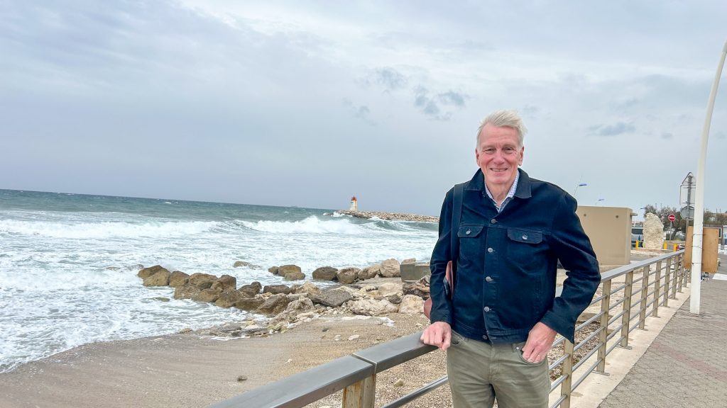 Blåsigt idag, rätt varmt idag också ca 20 gr men superblåsigt upp emot halvstorm. L möten på morgonen, T lyckas boka Seneglresan, snabb nudel lunch hemma, sen iväg mot Sausette les Pins med tåget från stationen, tåget tar 40 minuter.