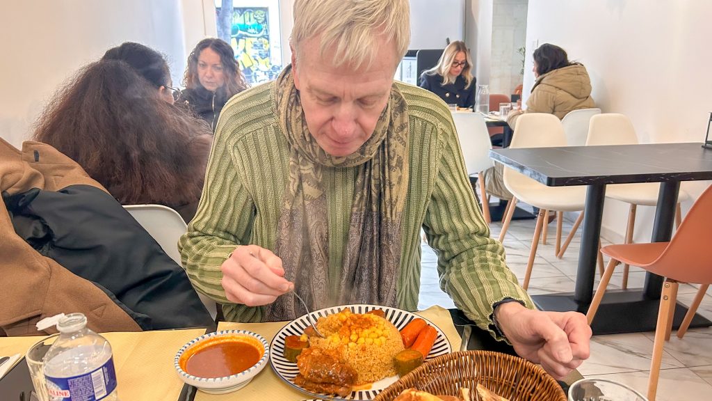 Massa jobb hela dagen, går ut och käkar lunch på ett nytt typ tunisiskt ställe på vår gata (där det mexikanska stället låg innan) Mycket trevligt, verkade vara ett par som hade stället, T tog cous-cous och Linda tog en Chapati https://www.youtube.com/watch?v=3vHI2EeeBkk