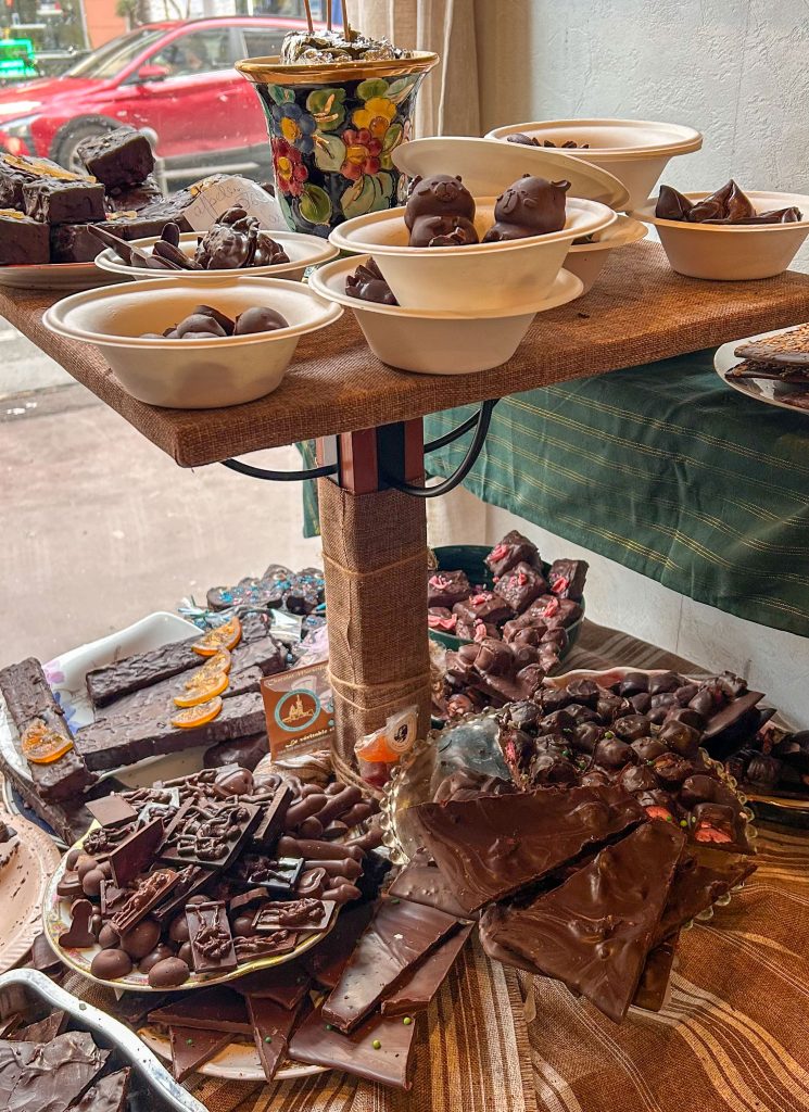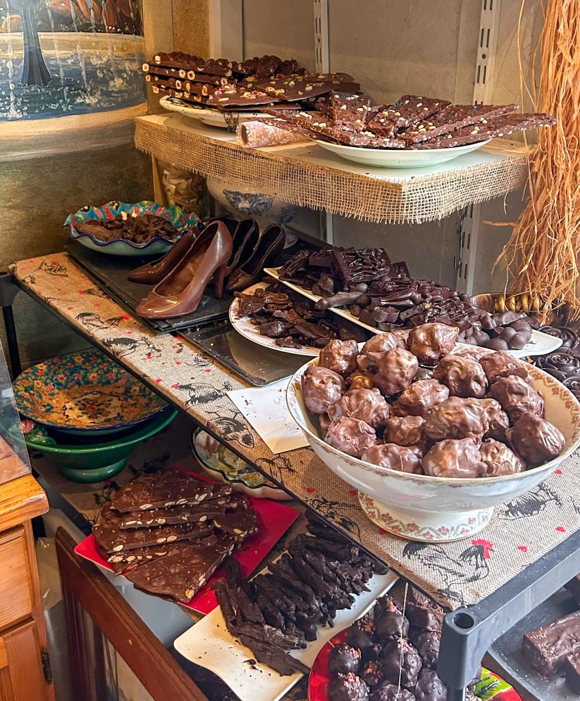 Upp mot 5 avenyer, går in på den lilla ”mystiska” chokladtanten, köper massa god choklad där.
