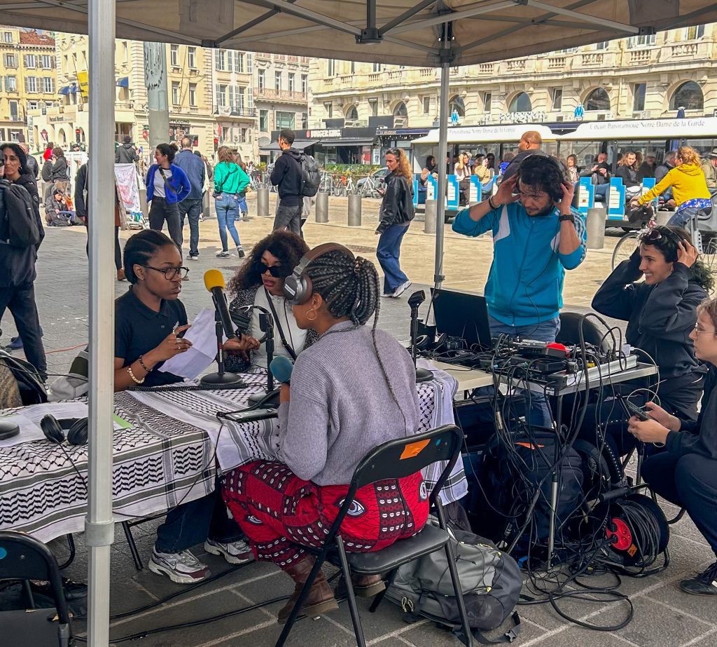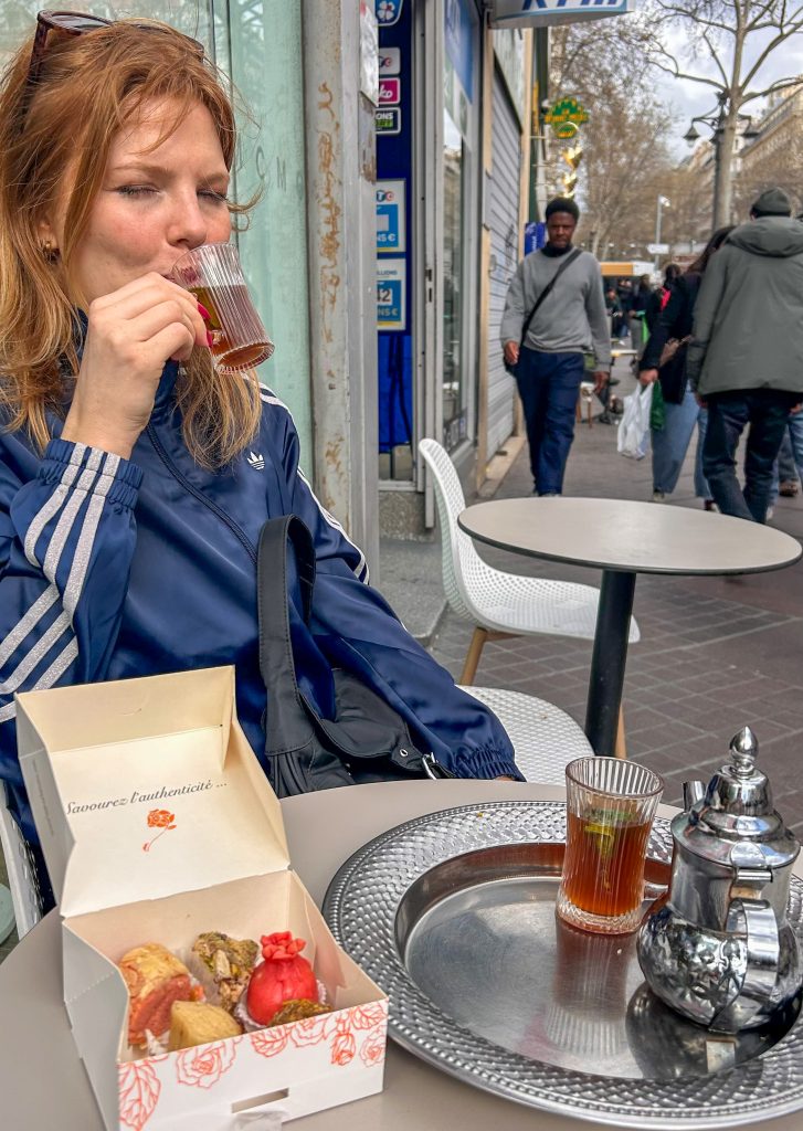 De tar en fika på ett relativt nytt ställe La Rose de Tunis, som är som ett stort fint kafé på Canabiere.