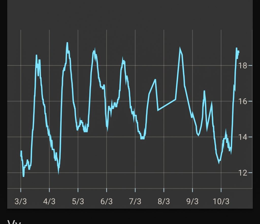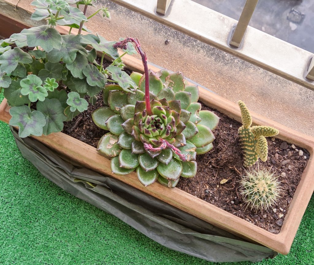 Soligt och varmt drygt 18 grader. Jobb förmiddag, sen ihopplock för L&T, slänger den gamla hyllan från förrådet. Det är nån som tar den nästan direkt nere på gatan – recycling:) Lite blomning på gång på balkongen i en av våra krukor.