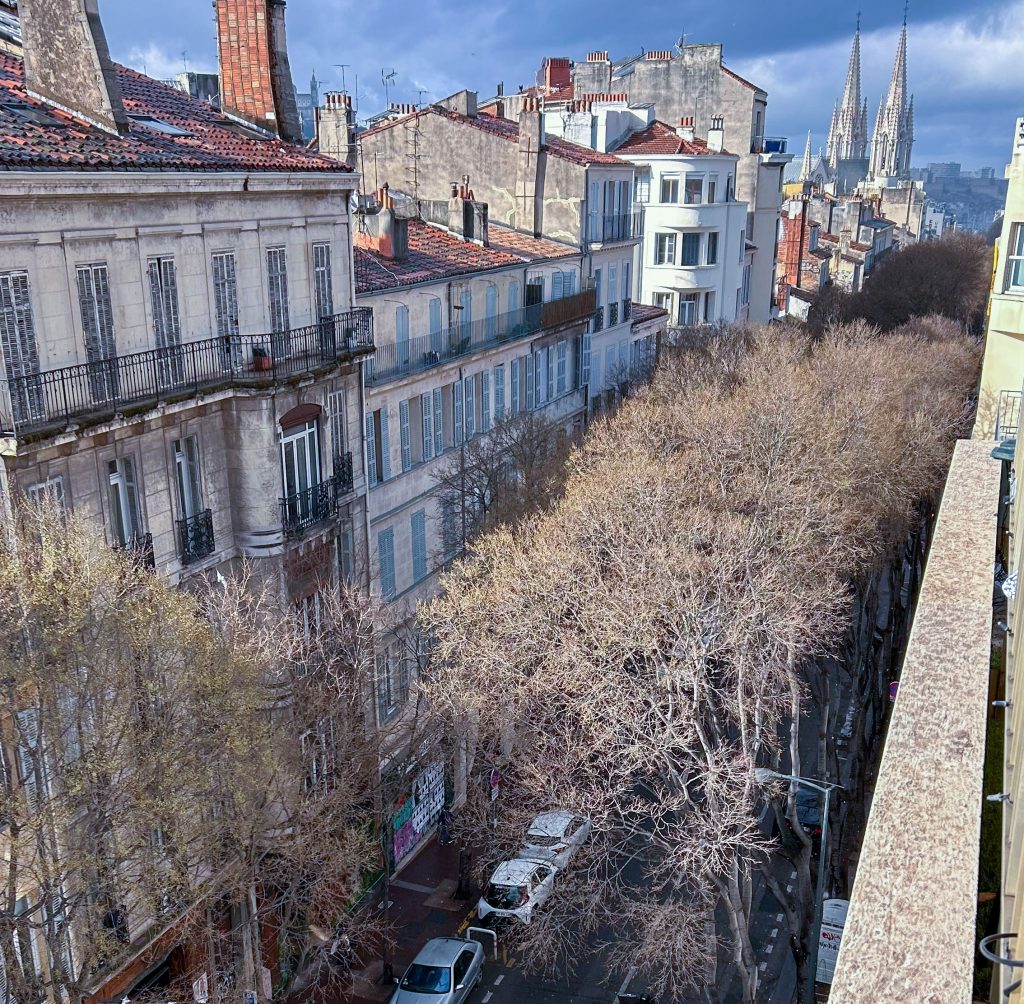 Träden på gatan har nästan slagit ut, svårt att se men det känns som om det är nära att bli grönt