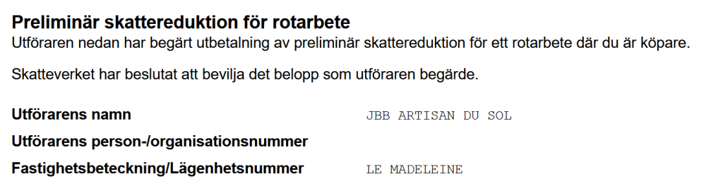 Idag kom beslutet från Skatteverket att vårt ROT avdrag för golvslipningen var godkänt. Det tog lite tid men ”envisast vinner”